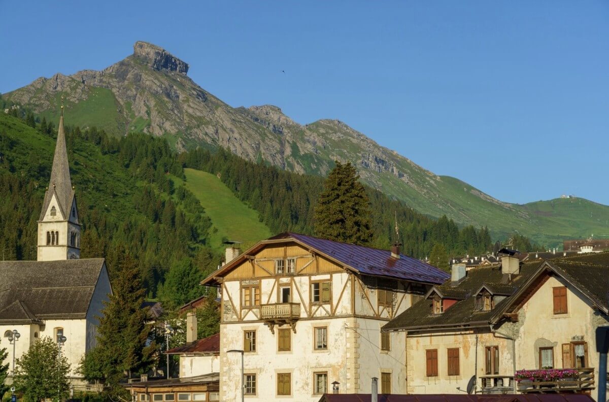 - Arabba — небольшой курорт с прямым выходом на Sella Ronda, где жильё дешевле за счёт меньшего количества туристов
