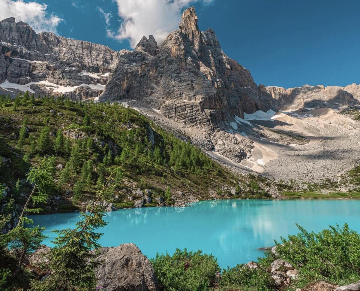 Lago di Sorapis — одно из самых необычных и красивых озёр Доломитов, благодаря молочно-бирюзовой воде.