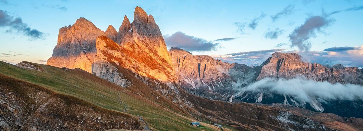 Seceda — одна из самых узнаваемых локаций региона. Острые гребни и вид на массив Puez–Odle делают это место настоящей визитной карточкой Валь-Гардены. Подъёмники позволяют легко попасть в высокогорье, а дальше выбрать прогулку подходящей длины.